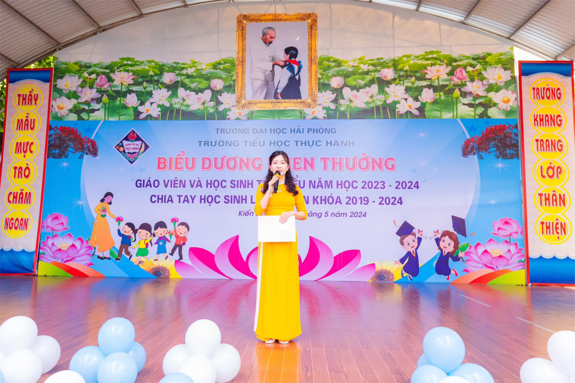 Cũng trong buổi tổng kết, nhà trường đã tổ chức Chia tay cho HS lớp 5. Em Đàm Khánh Vi-HS lớp 5C, đại diện cho 99 học sinh khối 5 lên nói lời tri ân thầy cô và cha mẹ. Các em sẽ luôn tự hào và biết ơn mái trường Tiểu học Thực Hành yêu thương. Thầy cô sẽ luôn tự hào về các em!